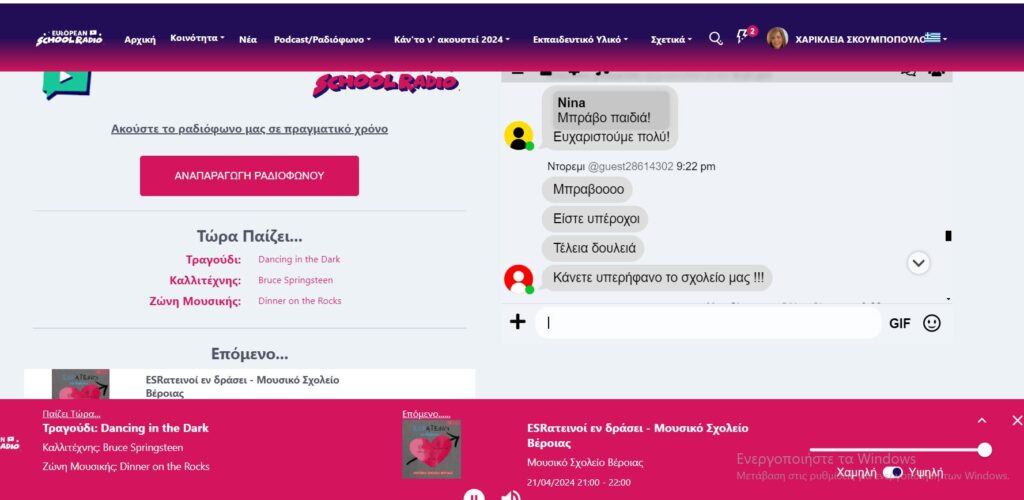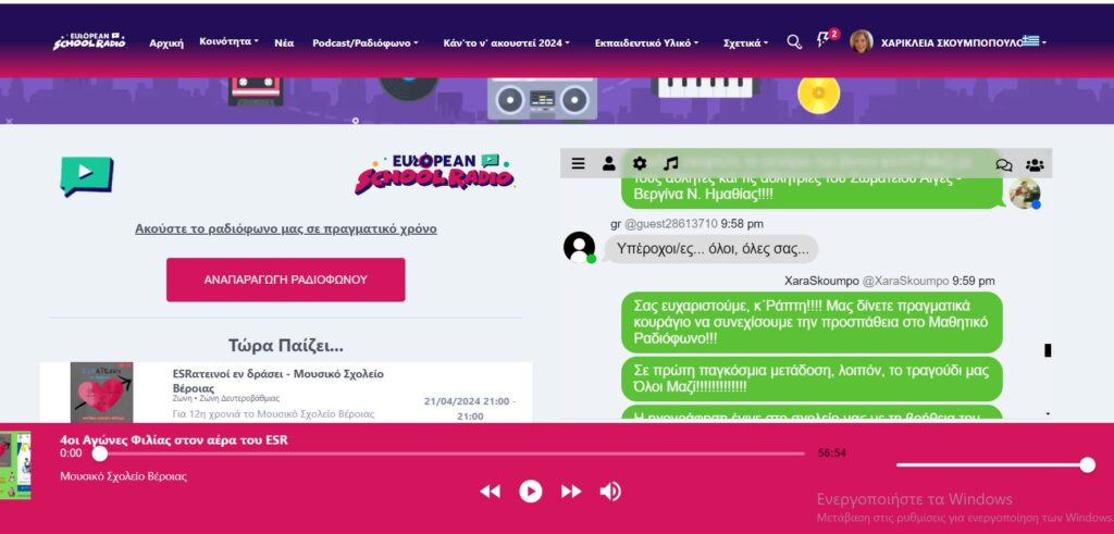 - Όλους όσοι άκουσαν τη ραδιοφωνική μας εκπομπή που μεταδόθηκε την Κυριακή 21 Απριλίου 2024 στις 9-10 μ.μ. στο Μαθητικό Ραδιόφωνο.