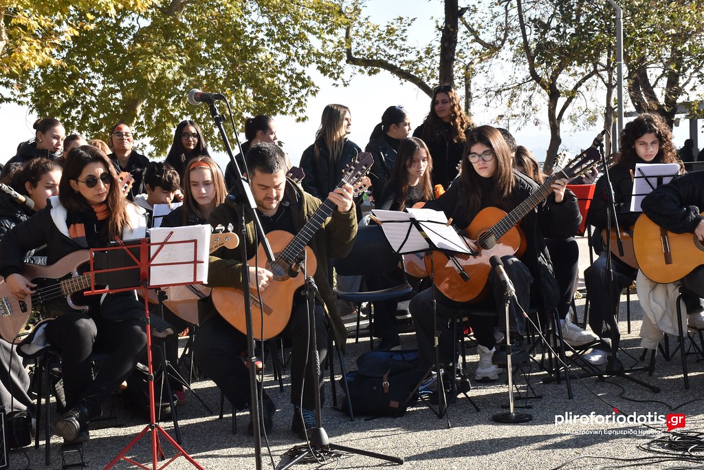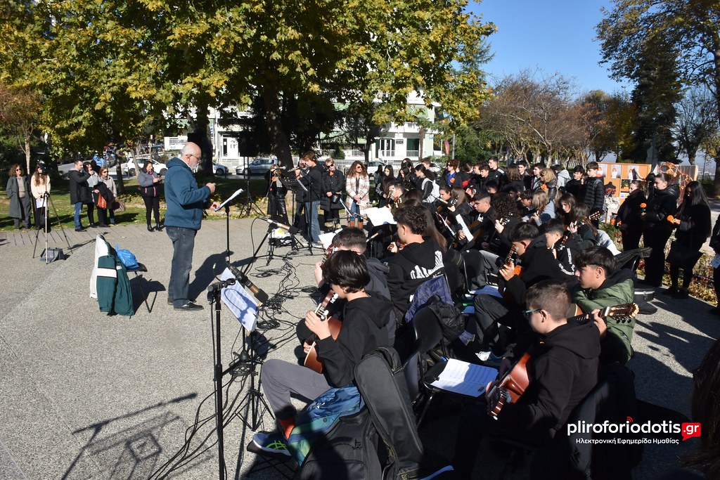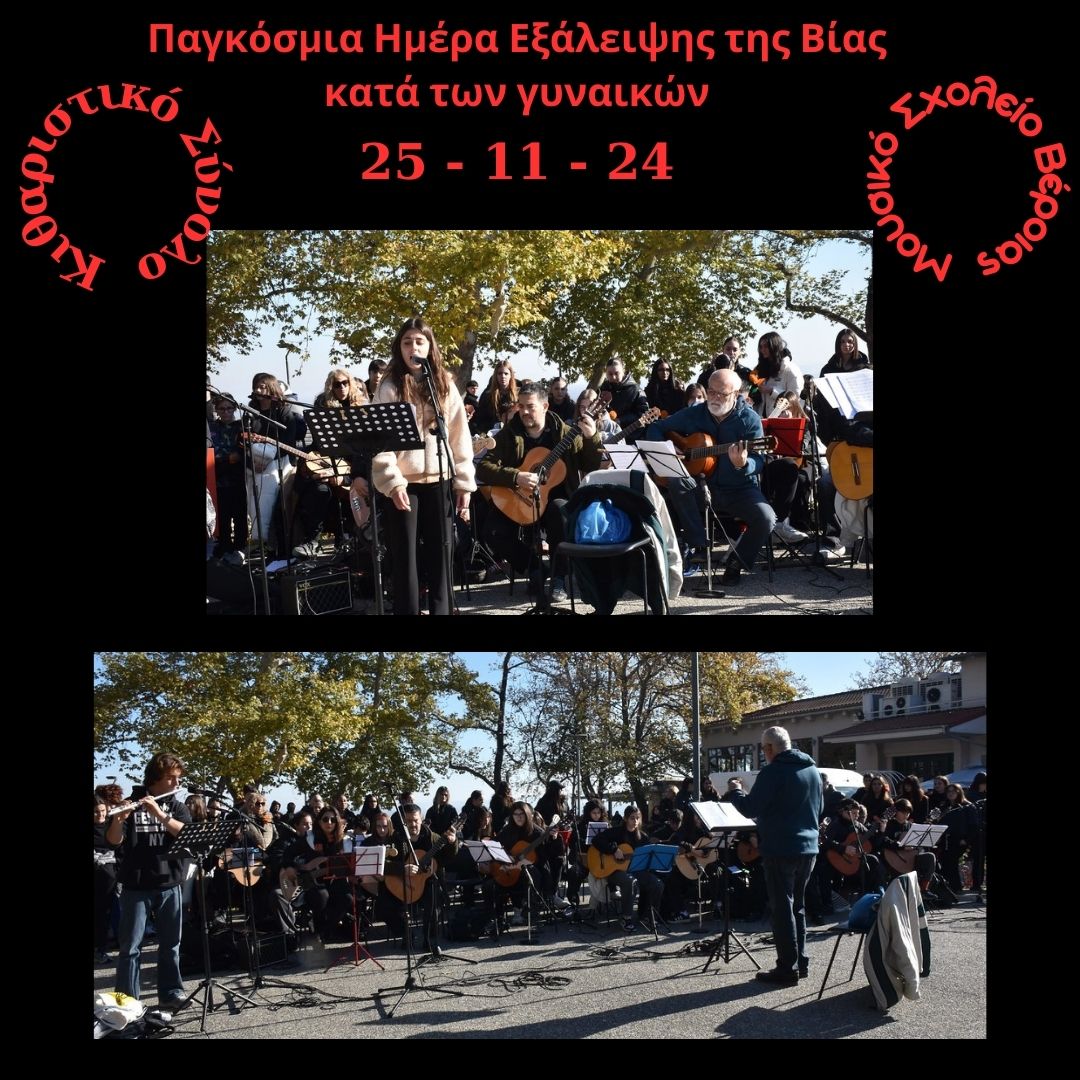 Στη δράση ευαισθητοποίησης και ενημέρωσης για την έμφυλη βία κατά των γυναικών, με αφορμή την Παγκόσμια Ημέρα για την Εξάλειψη της Βίας κατά των Γυναικών που διοργάνωσε η Επιτροπή Ισότητας των Φύλων του Δήμου Βέροιας συμμετείχε το Κιθαριστικό Σύνολο του Μουσικού Σχολείου Βέροιας το πρωί της Δευτέρας 25 Νοεμβρίου 2024.