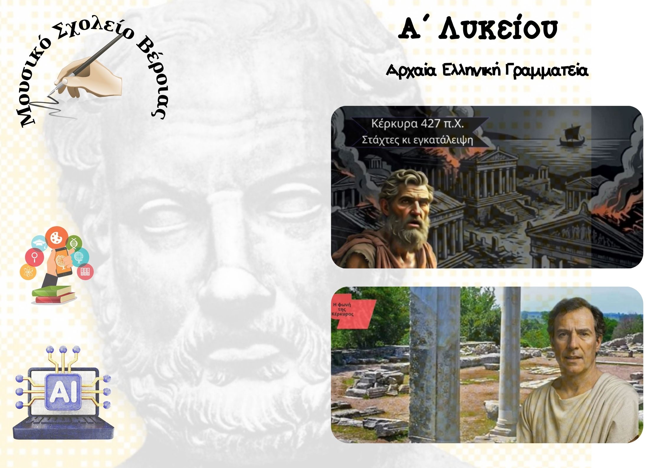 Στο πλαίσιο του μαθήματος της Αρχαίας Ελληνικής Γλώσσας της Α΄ Λυκείου στο πλαίσιο δημουργικής γραφής “δίνουμε φωνή” στους Κερκυραίους, βασιζόμενοι στο Κεφάλαιο 74 του Γ’ Βιβλίου των Ιστοριών του Θουκυδίδη!