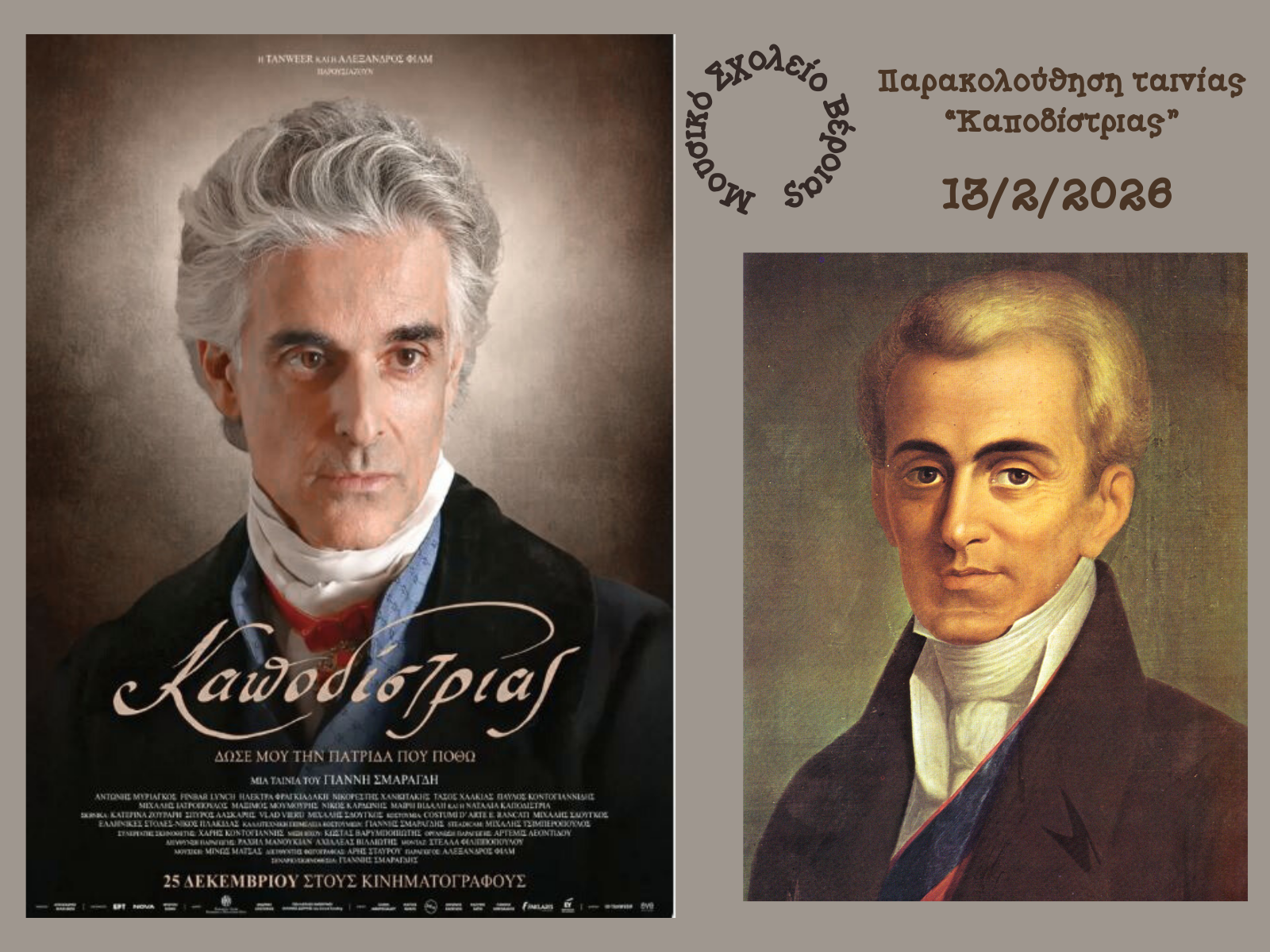 Την Παρασκευή 13 Φεβρουαρίου 2026 στο πλαίσιο των εκπαιδευτικών δράσεων του σχολείου μας οι μαθήτριες και οι μαθητές όλων των τάξεων του γυμνασίου/λυκείου του Μουσικού Σχολείου Βέροιας είχαν την ευκαιρία να παρακολουθήσουν την κινηματογραφική ταινία «Καποδίστριας» του Γιάννη Σμαραγδή στον κινηματογράφο Star της Βέροιας.